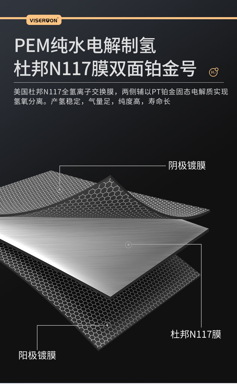 电解方式: | PEM纯水电解槽/进口N117杜邦质子膜 |