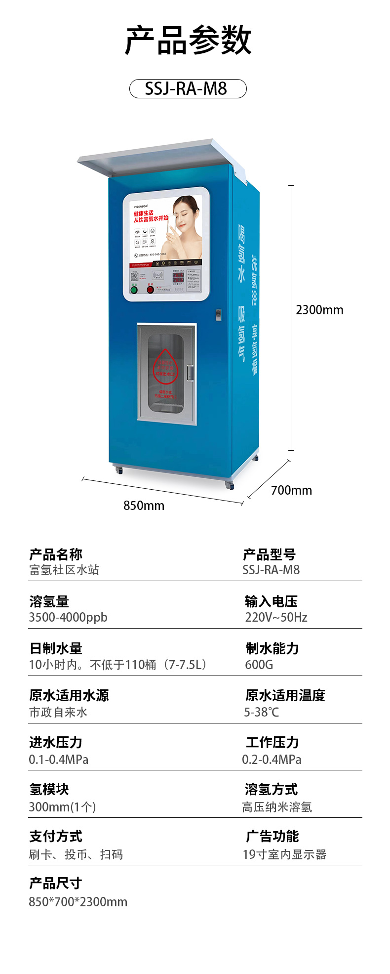 富氢水自动售水机SSJ-RA-M8